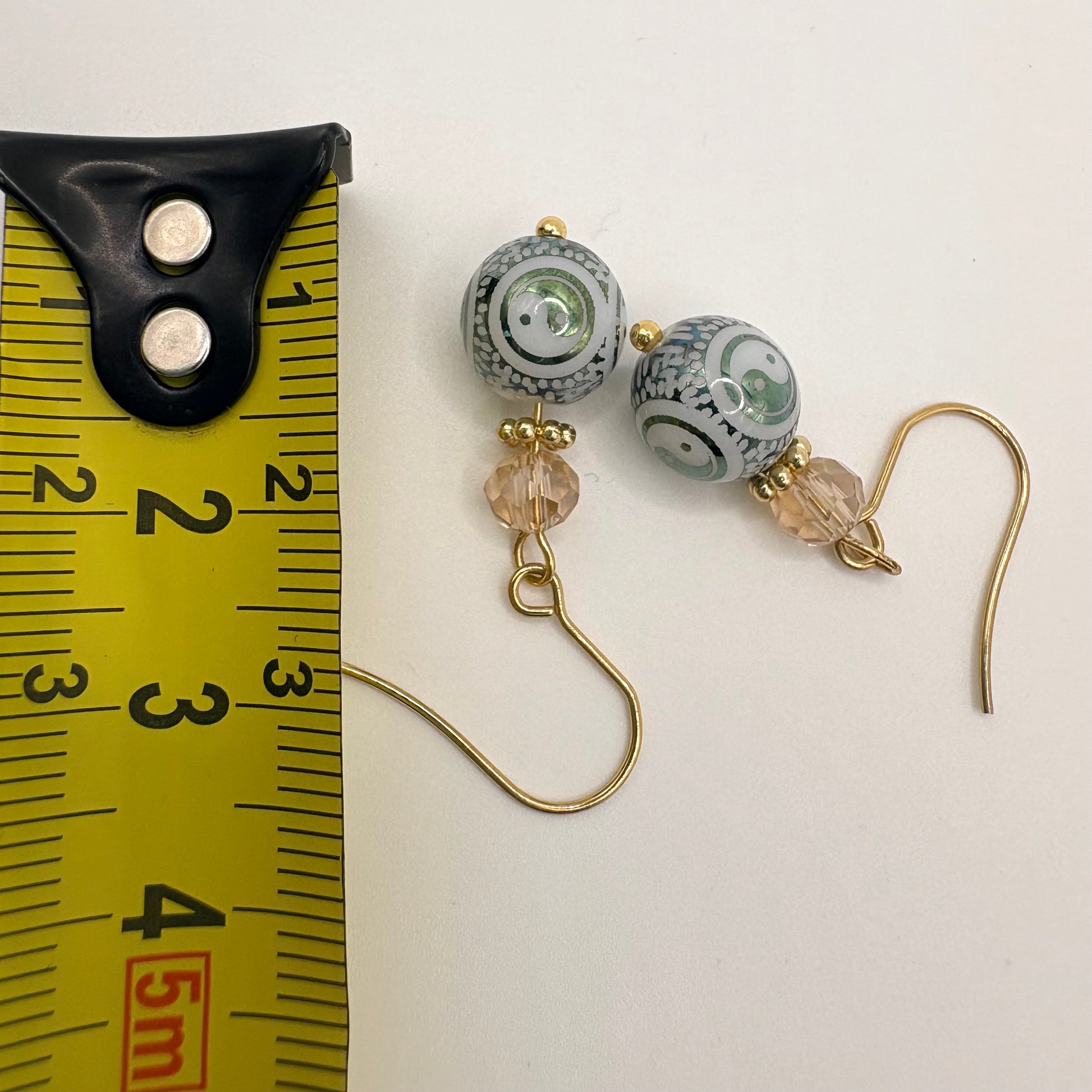 Balance - stainless steel oorbellen Verfijnde minimalistische oorbellen met gold plated stainless steel oorhaakjes en groene glaskralen voorzien van het klassieke yin en yang symbool. Het evenwichtige ontwerp combineert duurzame materialen met tijdloze symboliek, perfect voor wie subtiele elegantie waardeert. De hypoallergene stainless steel oorhaakjes zorgen voor comfort bij dagelijks dragen, terwijl de groene glaskralen een natuurlijke, rustgevende uitstraling geven. Een statement piece dat eenvoud en betekenis samenbrengt.