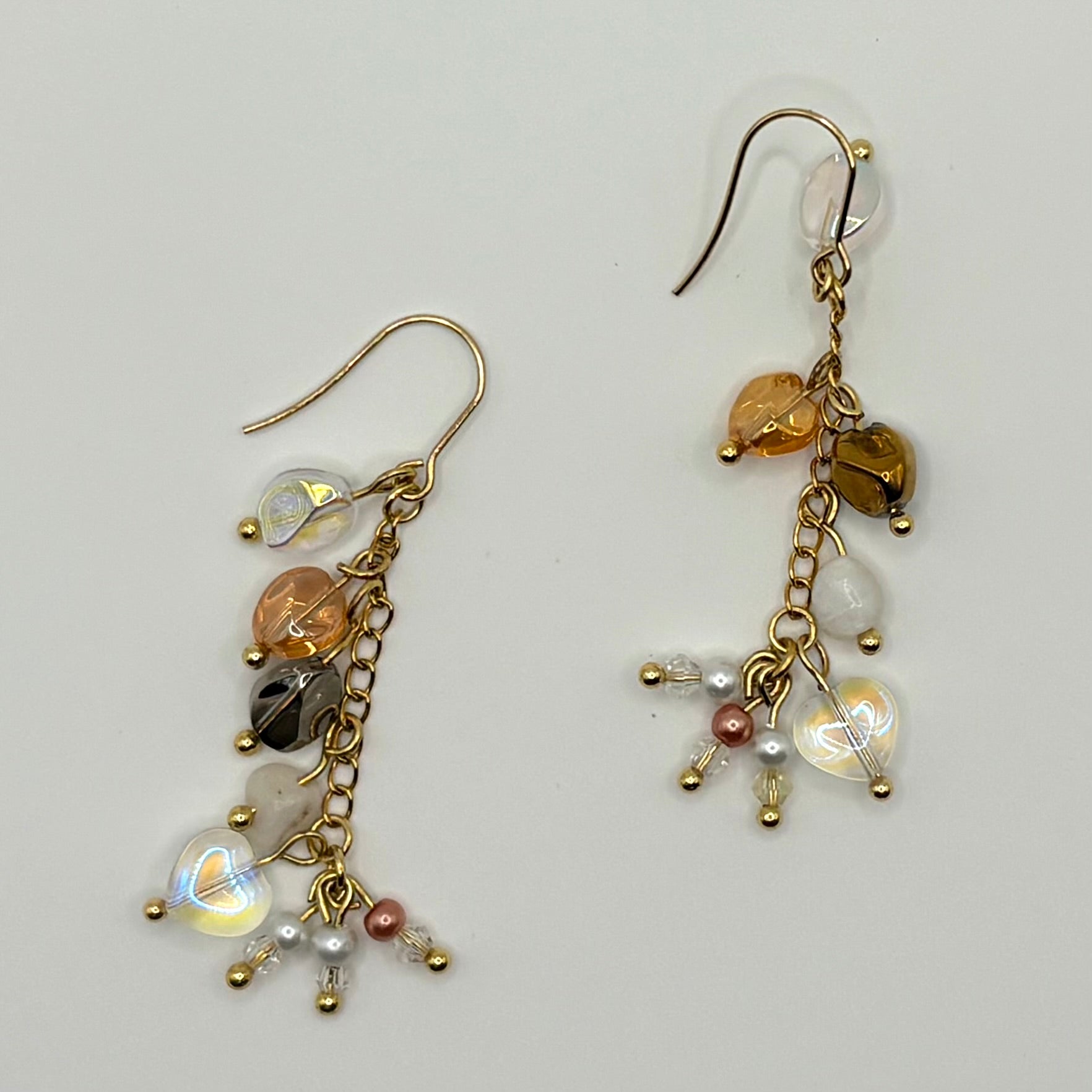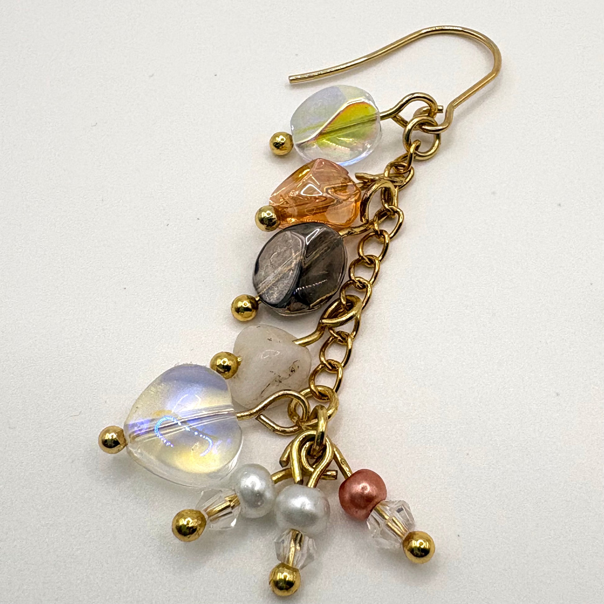 Calico is een speels maar verfijnd paar oorbellen waarin verschillende materialen en tinten samenkomen tot een harmonieus geheel. Transparante facetgeslepen kralen worden gecombineerd met warme, donkere accenten en subtiele kleurreflecties, waardoor het ontwerp levendig blijft zonder onrustig te worden.